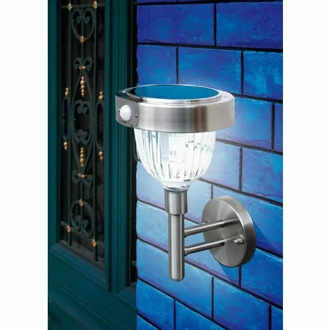 Dans lobscurité, la lampe sallume comme une lumière dorientation avec une faible luminosité, lorsquun mouvement (changement de chaleur) est détecté, les 3 LEDs Nichia intégrées sallument avec leur pleine luminosité pendant environ 60 secondes. Cette propriété augmente considérablement lefficacité du luminaire, car la lumière vive ne brille que lorsque cela est nécessaire. Boîtier robuste en acier inoxydable avec module solaire cristallin intégré et capteur de mouvement à 120 degrés.
