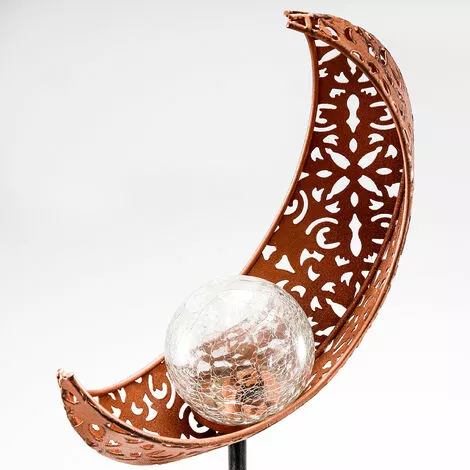 Pendant la journée, la faucille cuivrée impressionne par ses magnifiques ornements. Cela semble particulièrement bien dans le jardin de fleurs ou comme point culminant visuel entre les arbustes ou les arbres verts. Le soir, on dirait que la lune sest prise dans la faucille. Celle-ci est renforcée notamment par le verre brisé de la boule lumineuse intérieure. Laissez la prise de jardin vous inviter à rêver.