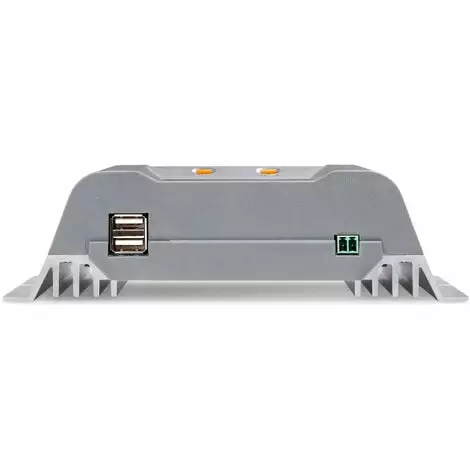 Le contrôleur de charge de haute qualité avec microprocesseur garantit une charge et une protection particulièrement efficaces de la batterie solaire connectée. En fonction de létat de charge de la batterie, elle a différentes fonctions de charge. Un écran LCD fournit des informations sur les paramètres individuels du système solaire tels que : courant de charge, courant de décharge, état de charge de la batterie, module solaire et tension de la batterie et bien plus encore. Les deux ports USB intégrés permettent par ex de charger les téléphones portables. Lassemblage seffectue via le dissipateur thermique arrière en aluminium. Le raccordement électrique se fait via des bornes à vis.