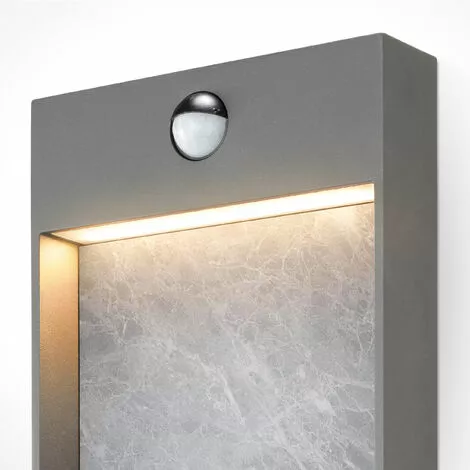 La plaque daluminium imprimée en pierre est éclairée par le dessus par des LEDs blanc chaud et économes en énergie. Cette combinaison unique crée un objet lumineux spécial dans le jardin ou sur le trottoir ! Le détecteur de mouvement est discrètement intégré dans le boîtier du luminaire et allume le luminaire lorsque la température change en raison du mouvement. La zone éclairée est une plaque daluminium imprimée résistante aux intempéries. Le disque en plastique mat intégré diffuse la lumière et réduit léblouissement.