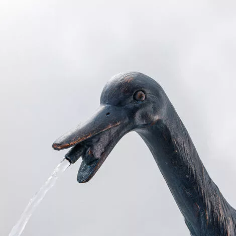 La figurine de gargouille « Oie Erna » peut être facilement raccordée à une pompe de bassin existante à laide du tuyau fourni (ø 13 mm). Cest à vous de décider si vous utilisez la gargouille avec une pompe solaire esotec appropriée ou une autre pompe.