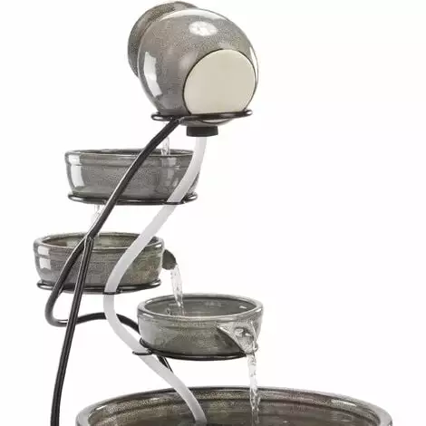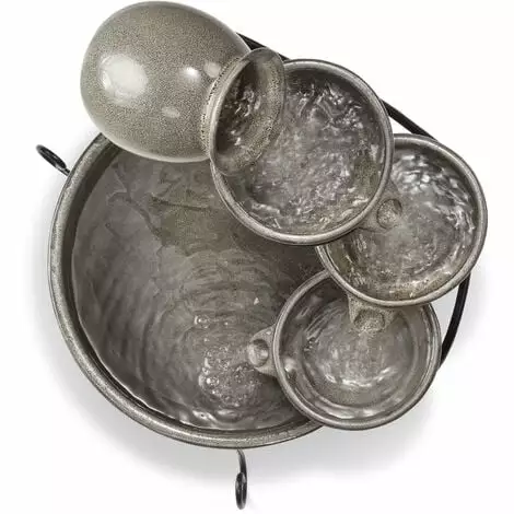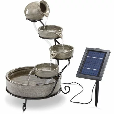 Le cadre en métal robuste assure un support sécurisé, tandis que les bols en céramique galbés individuels incarnent le style méditerranéen typique. Grâce à une pompe solaire de bassin efficace, le soleil se charge seul de lopération. Dès que suffisamment de lumière du soleil atteint le module solaire, la pompe commence à pomper de leau dans la cruche supérieure.