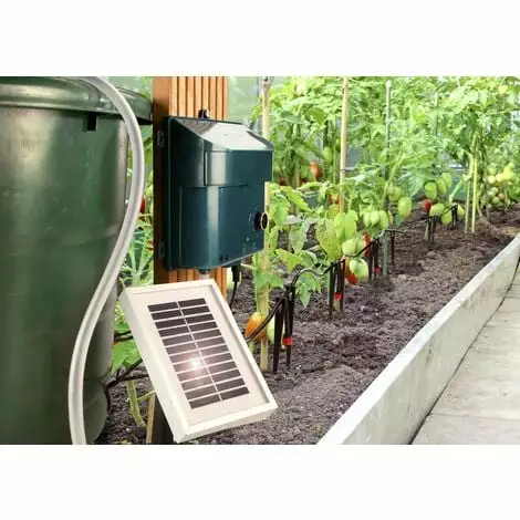 Inclut 15 supports et busesS’allume automatiquement 2 x par jourIntervalle réglable de 0,5 à 5 litres par irrigationExtrait l’eau d’un baril, d’un étang ou d’un seau de pluie, par exemple
