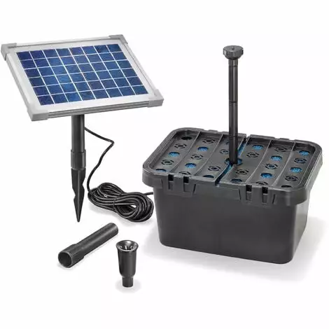 Le kit complet de filtre solaire pour bassin 470 convient pour les bassins jusquà max. 1000 l de volume deau (selon loccupation).