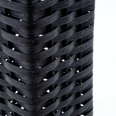 Si leur construction classique allie tradition et modernité, le matériau utilisé fait preuve de résilience : Le ruban tressé en plastique brun foncé est résistant aux intempéries et durable. Du plastique résistant aux UV est également utilisé pour la base et la plaque de recouvrement du cadre métallique tressé à la main.