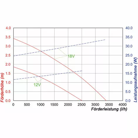 - Hauteur de refoulement : Jusquà 1,8 m (à 12 V) et 3 m (à 18 V)