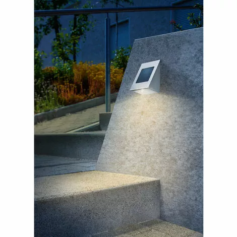 Cette applique murale solaire est particulièrement adaptée pour une utilisation dans les zones dentrée et dallée ou pour éclairer des escaliers ou similaires. Le module solaire ASI intégré est délibérément surdimensionné afin quune quantité suffisante dénergie soit chargée dans la batterie même les jours de mauvais temps. La lumière sallume automatiquement au crépuscule et séteint de nouveau à laube ou lorsque la batterie est vide.