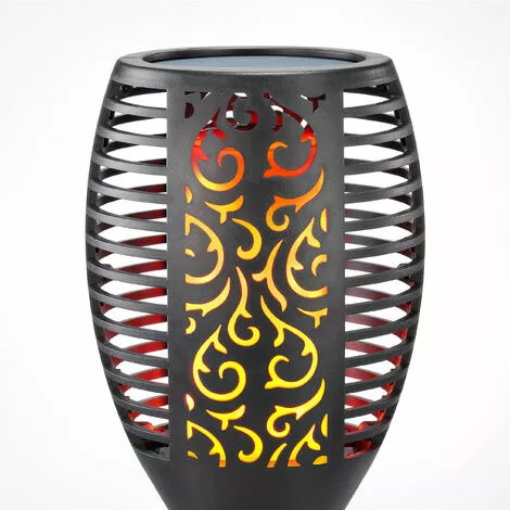 Ces torches solaires imitent une flamme réaliste, générée par 96 LED jaunes / orange. Grâce au fonctionnement solaire sans fil, vous navez besoin que dun endroit ensoleillé pour le positionnement ! Vous pouvez la placer en toute sécurité entre des buissons dans le sol ou la fixer à un mur à laide de la plaque de montage fournie.